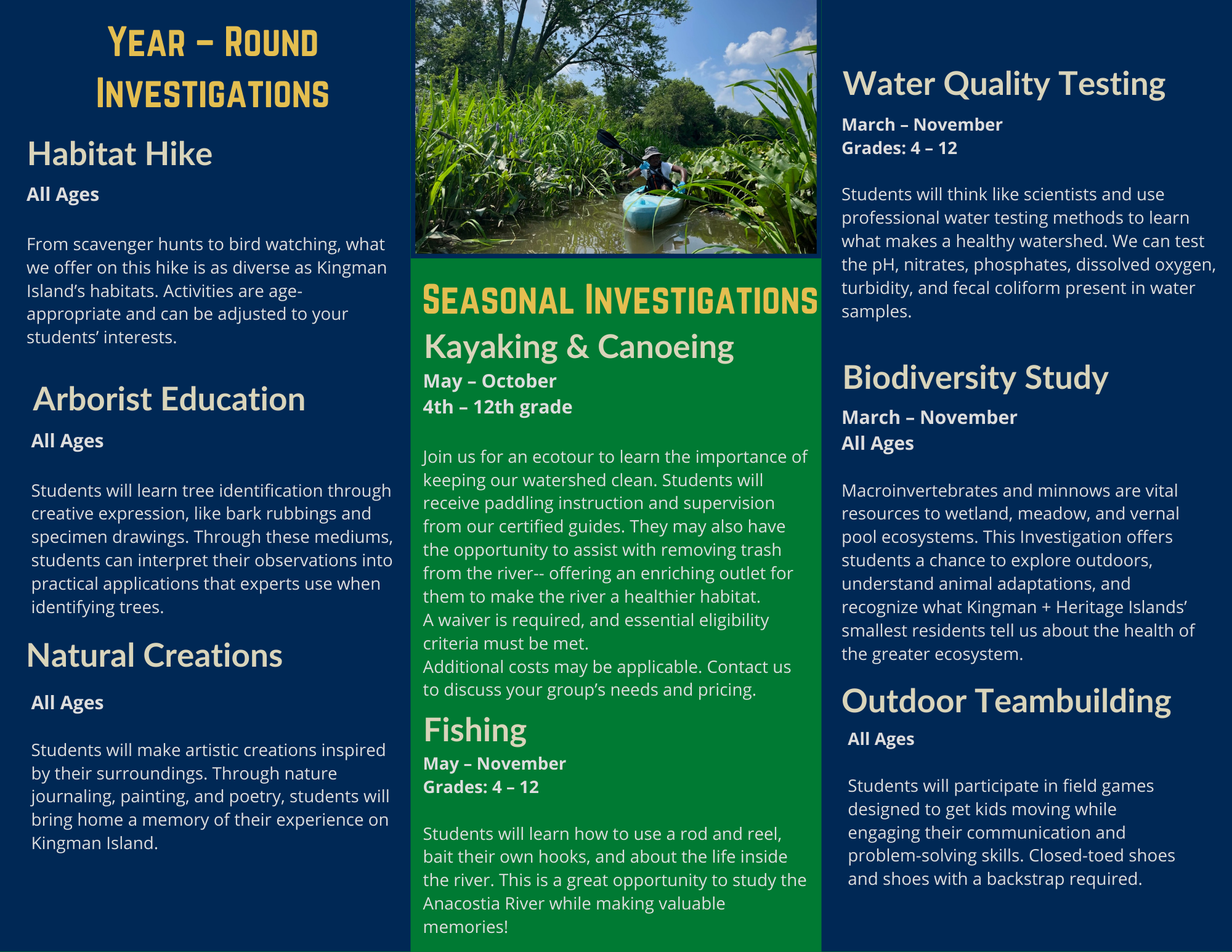 If you are interested in this role, email kingmanisland@livingclassroomsdc.org to be added to our 2026 Jr. Ranger candidate list. We’ll be in touch!